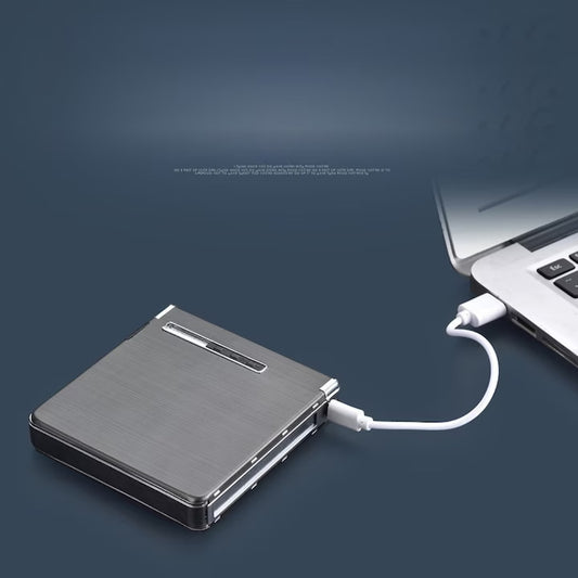 Tabachera cu bricheta electrică, încărcare USB, capacitate 20 de tigari 3 în 1
