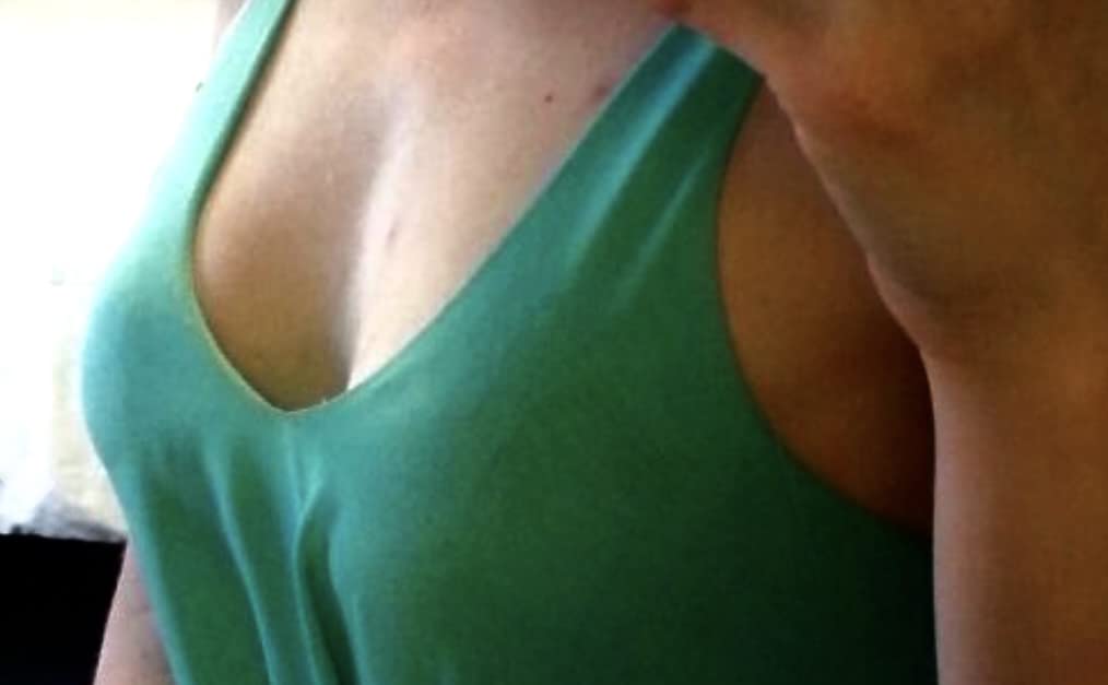Prinde marginea superioară a sutienului și dezlipește-o de pe sân.