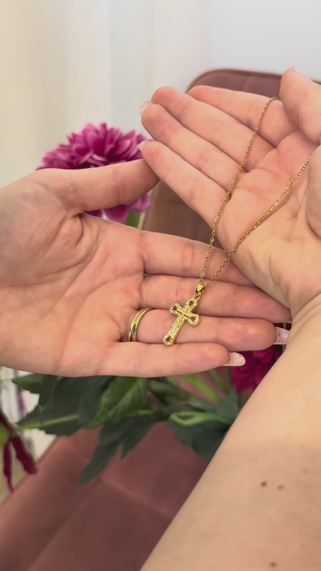 - Crucea este un simbol creștin universal, reprezentând credința, sacrificiul și mântuirea. În contextul acestui colier, ea este centrul spiritual al bijuteriei.