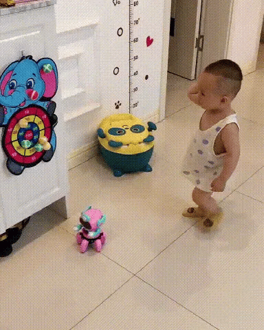 Foarte captivant, fetita mea este încantată de jucarie, este interactivă, practică. Am pus-o în bucatarie acolo unde eu petrec cel mai mult timp si ne jucam împreună. Rade mereu si e o placere sa interactionam. Multumesc!