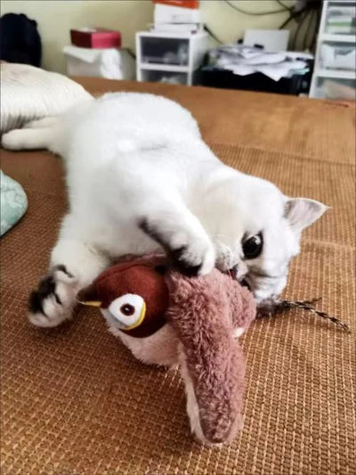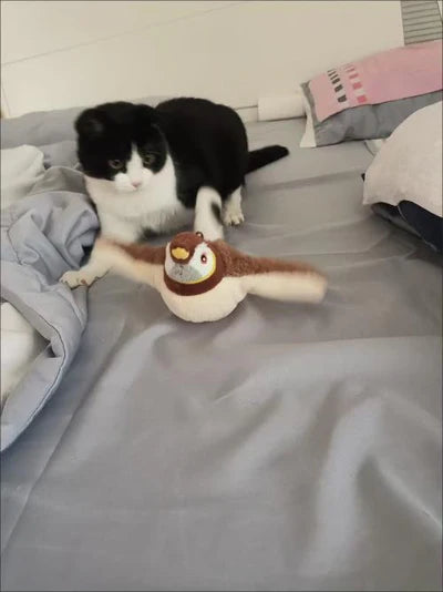 Această pasăre de pluș incredibil de realistă își bate aripile și scoate sunete vii de ciripit, captând instantaneu atenția pisicii tale. Un divertisment indispensabil, pisica ta o va adora!