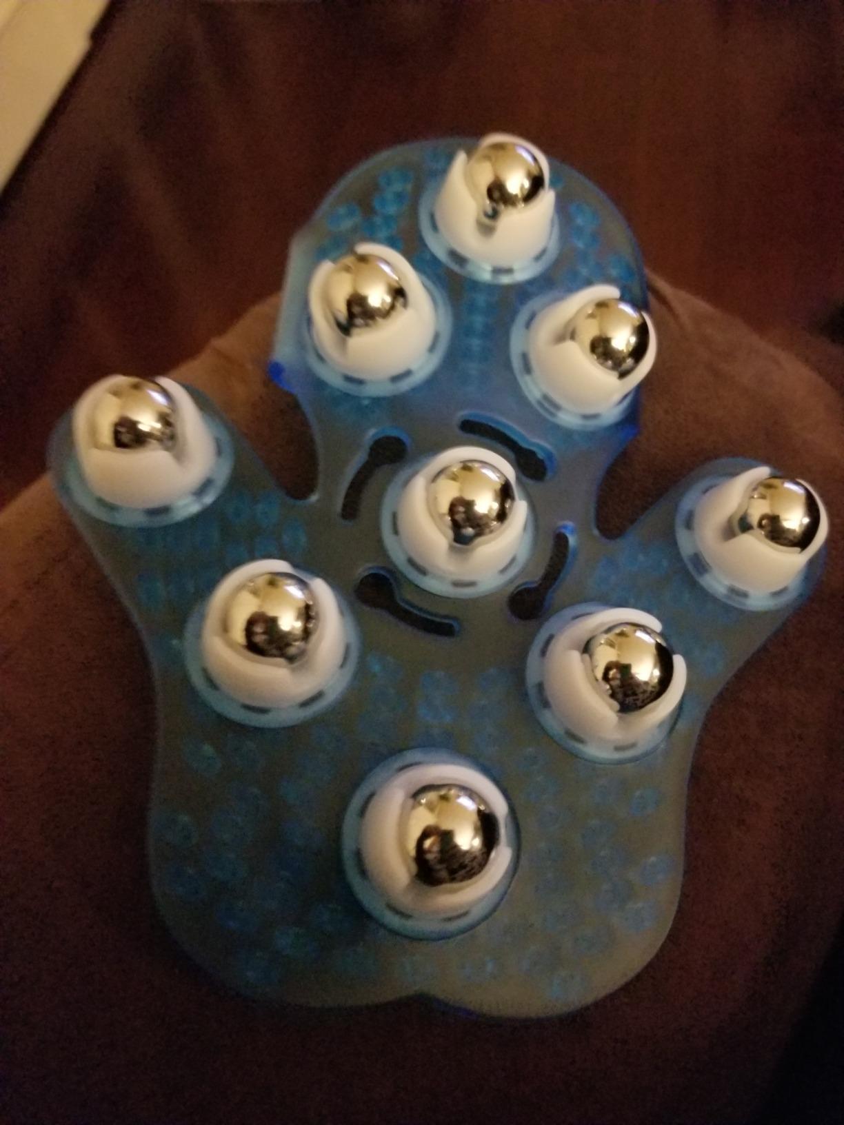 ✅ Palma manusii are 9 bile din inox de tip roll-on rotative 360 care maseaza zonele corpului intr-un mod placut cu presiunea pe care o doriti Dvs. si care va ofera senzatia asteptata. Cureaua, care se ataseaza in jurul degetului aratator, mijlociu si inelar, imbunatateste aderenta.