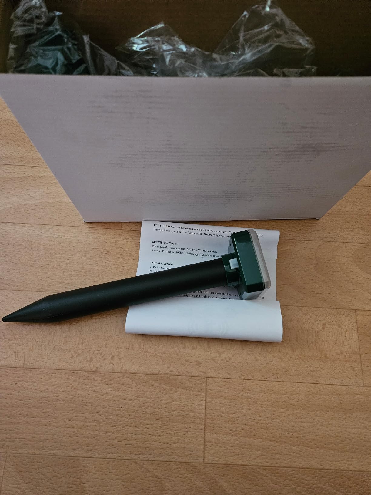 Până acum, totul e bine.Am luat 2 dispozitive solare anti-cârtițe și am pus unul în curtea din spate și altul în curtea din față.Ambele par să funcționeze bine și creează o vibrație sonică și un sunet.Funcționează cu energie solară, așa că nu trebuie să-l încarc.Aș sugera cu siguranță să-l așezi într-un loc unde să nu treci accidental peste el mașina de tuns iarba.Scrie că durează o săptămână sau două pentru a ține eficient cârtița departe.